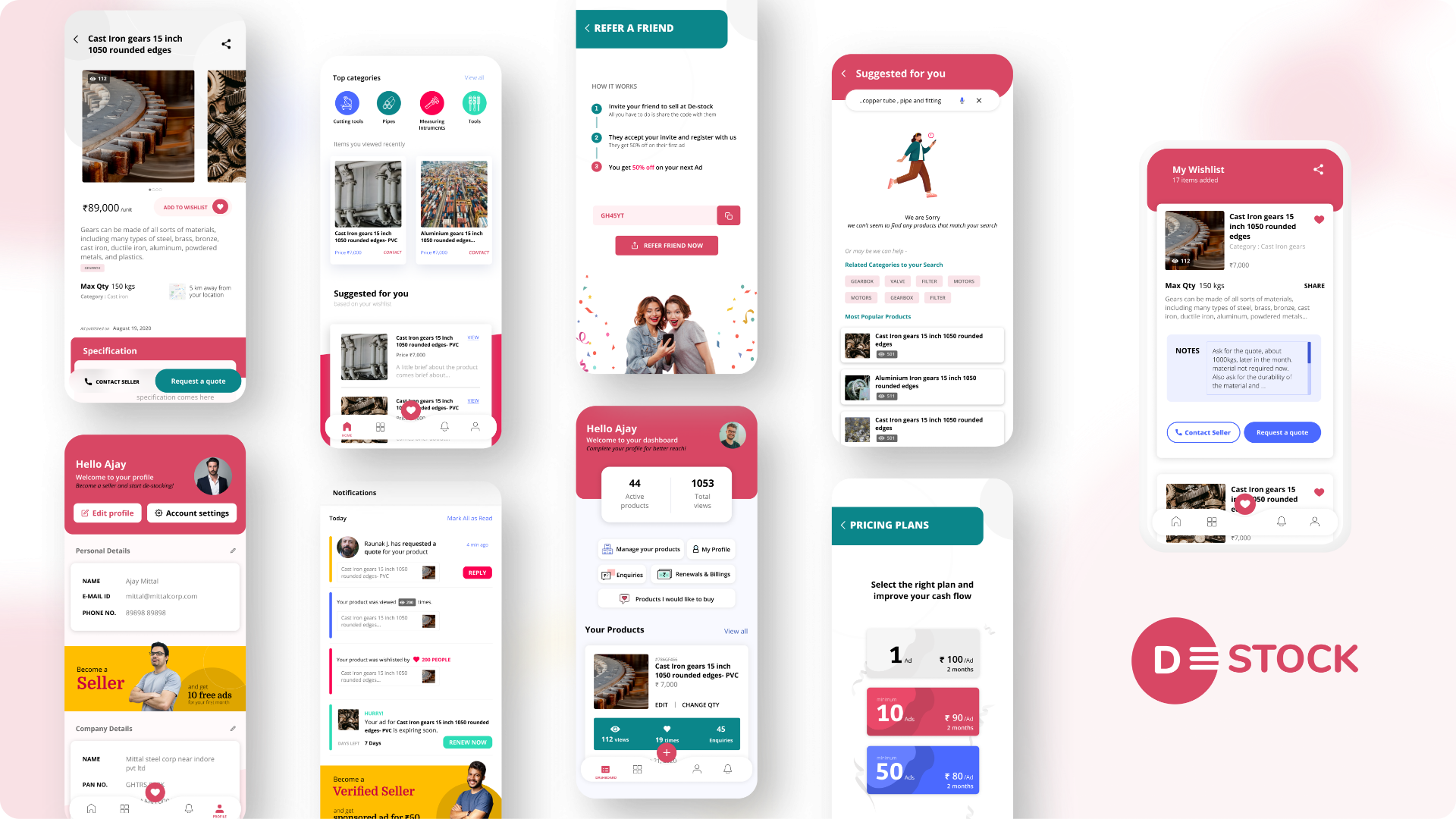 De-Stock is a platform for trading industrial raw material. Their aim is to enable users from various manufacturing industries to buy or sell their non-moving or unused material. The founder identified this gap in their existing traditional business and hence sought out to create De-stock.