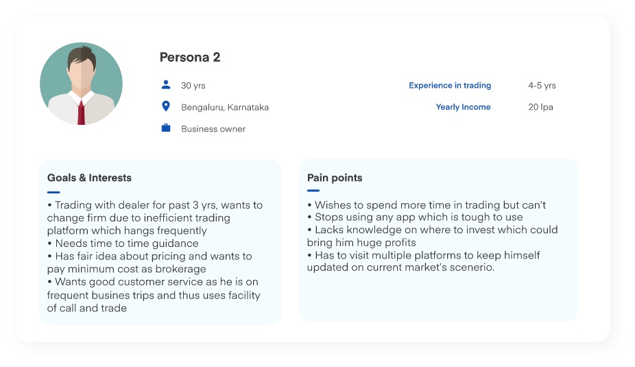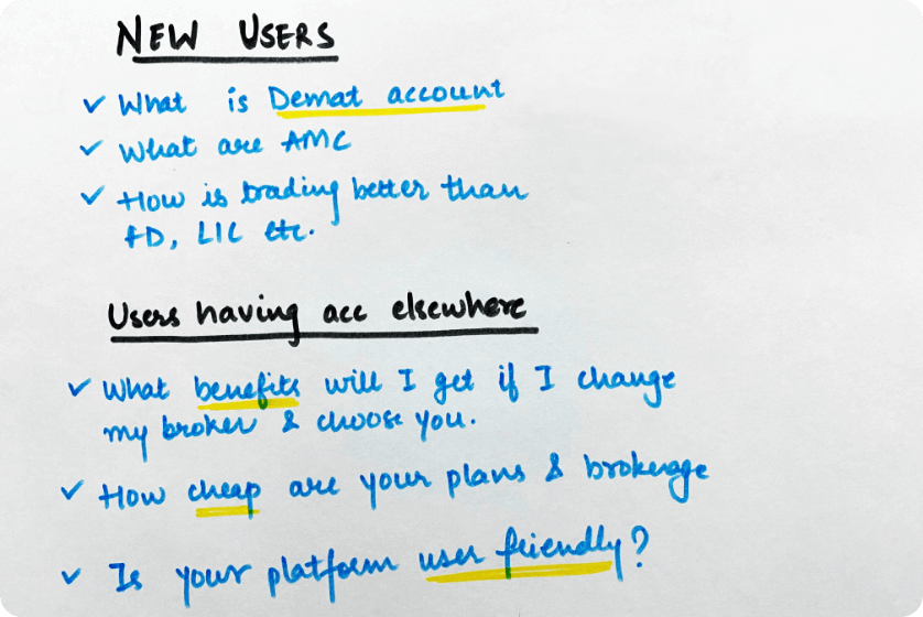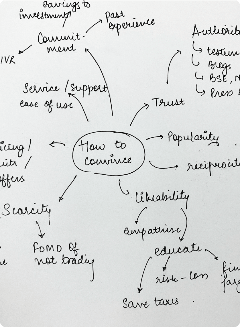 From the research, we analyzed that to convince the users, we need to focus on four factors - Trust, Popularity, Pricing, and Support. Further, we incorporated the Six Universal Principals of Persuasion by Dr. Robert Cialdini. By combining all these, we started framing narratives and stories leading to any user’s journey until they click the ‘Sign-up’ button. All the data points collected in the research process helped us create accurate user personas and their ideal journeys. As an example, visitors didn’t understand the financial jargon. This sole finding led us to analyze how we can make the user feel at home by simplifying the overall language and give help-text wherever required.