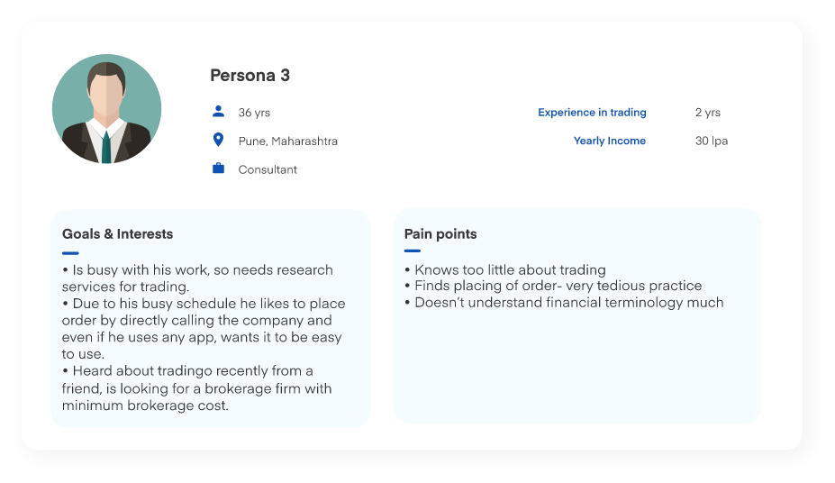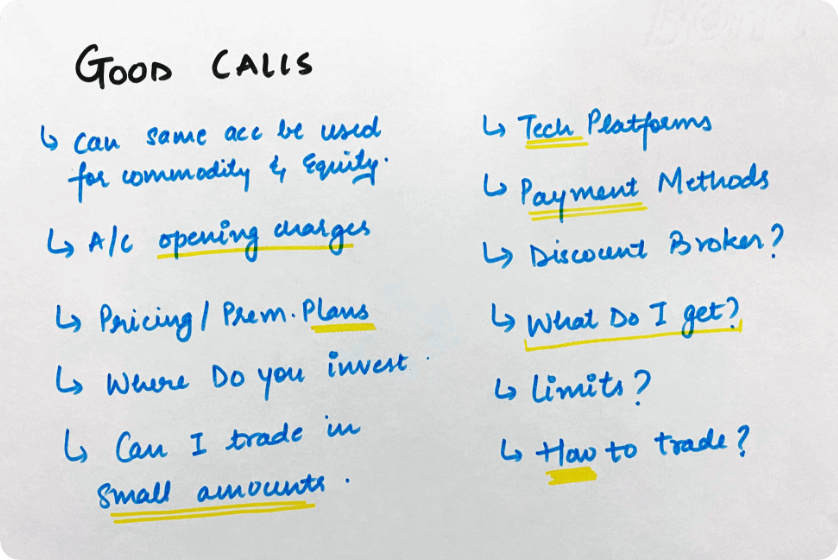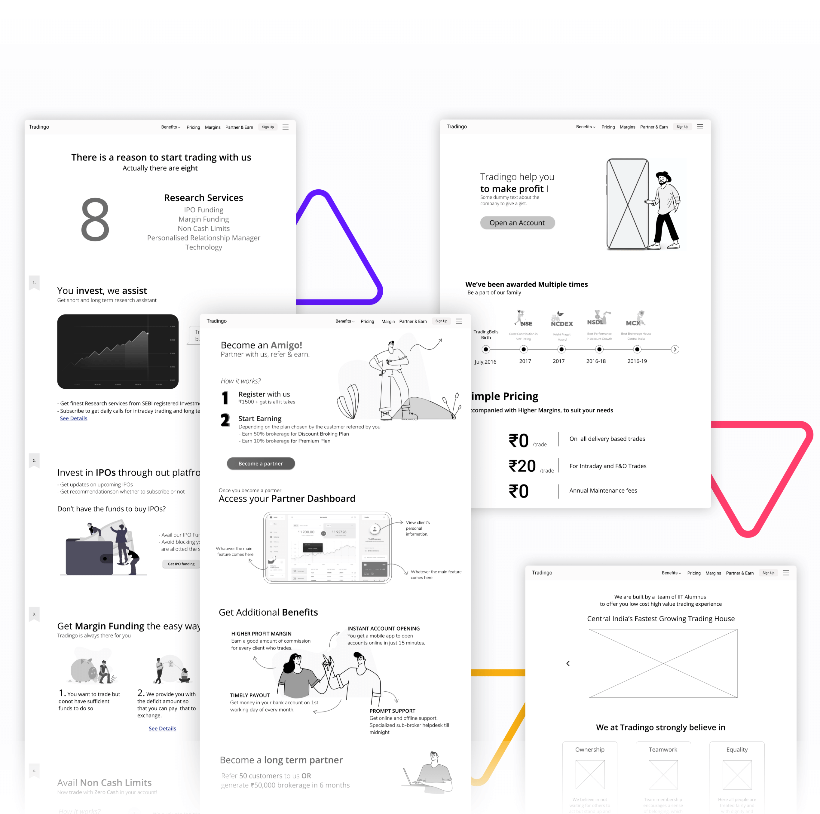 Tradingo website aimed to convince any potential customer to start using Tradingo’s services, thus aiding the sales team with increased conversion numbers. We started the research process by looking at Google Analytics for the old website. Usually, this process reveals information on user behavior and on content that most users seek. Further, interestingly, we listened to the recorded telephonic conversations between the Tradingo sales team and their potential customers. These were a bunch of good and bad calls where we identified what kind of queries do stock market beginners and advanced traders have and how they are answered. We figured out patterns in the sales teams’ telephonic pitches and used the same fundamentals to create the website.